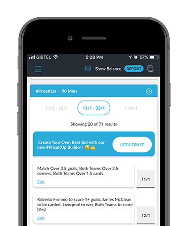 See a #PriceItUp bet that you want to tweak? The introduction of our unique ‘Edit’ functionality alongside all #PriceItUp bets means you can now edit an existing #PriceItUp bet and create your own custom made creation. Have fun adding and removing selections to arrive at Your Best Bet!